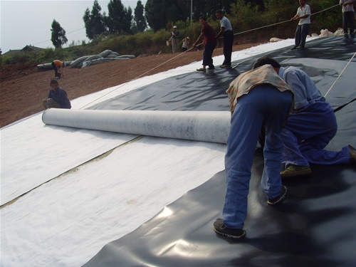 養(yǎng)殖土工膜將繼續(xù)發(fā)揮其性能,不斷的充實(shí)工程建設(shè)質(zhì)量,保障客戶朋友對(duì)土工膜的使用體驗(yàn)度,提升工程質(zhì)量。養(yǎng)殖土工膜鋪膜時(shí),一定要由上下而上鋪設(shè).膜與膜之間及膜與基面之間要壓平貼緊,但不宜將膜拉得過緊,一般要略松一點(diǎn),但不能在膜底留有氣泡。因?yàn)橥凉つけ容^薄且很輕,鋪好以后,在未鋪好保護(hù)層以前,極易被風(fēng)吹動(dòng),所以一次鋪膜面積不宜達(dá)大,較好邊鋪膜邊蓋保護(hù)層土料。